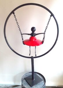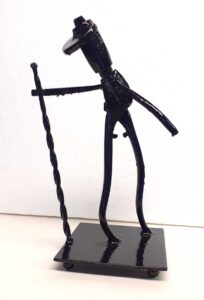 Hij lijkt een beetje op King Kong die in een toren klimt, maar deze acrobaat klautert behendig op dit trapezium. Zie jij er iets anders in en wil je hem graag thuis een mooi plekje geven? Laat het ons weten!